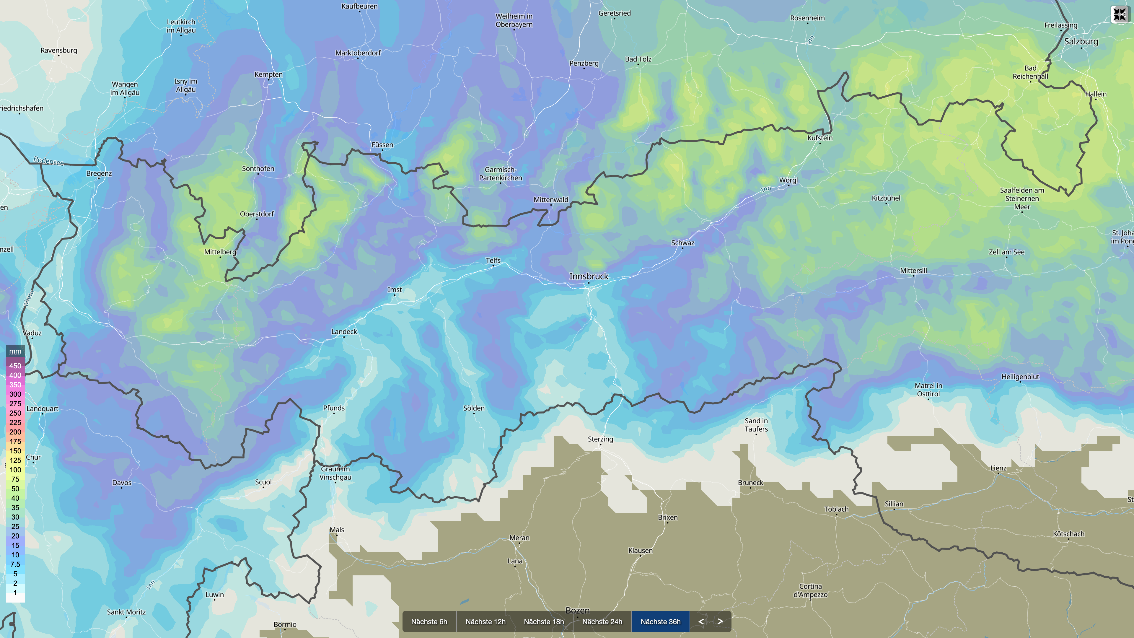 Nach den neuesten Modellläufen müssen die prognostizierten Niederschlagsmengen für Dienstag nochmals deutlich nach oben angepasst werden. Vor allem entlang der Alpennordseite zeichnet sich eine intensivere und länger anhaltende Niederschlagsphase ab als noch in den gestrigen Berechnungen.